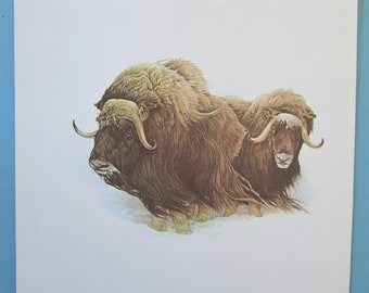 Muskox or musk ox in winter in the cape krusenstern national monument in northwestern alaska wpa poster art vector illustration by patrimonio 0/0.